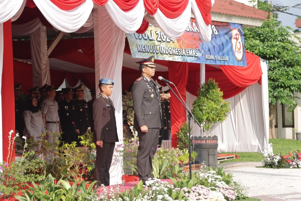 Polres Kediri memperingati Hari Bhayangkara ke-78, pada setiap tanggal 1 Juli, dengan menggelar upacara di lapangan belakang Pemerintah Kabupaten (Pemkab) Kediri, Senin (1/7/2024).