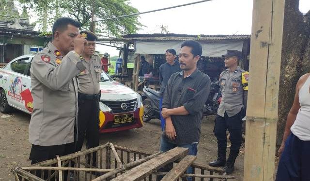 Dua petugas yang mendatangi lokasi sabung ayam di jalan Pinang Gg I Kelurahan Blabak Kecamatan Pesantren Kota Kediri, berhasil mengamankan sejumlah barang bukti ayam dan kurungan saat pengrebekan.