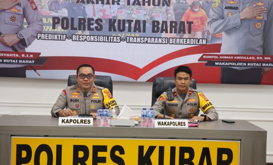 “Hari ini kita berkesempatan menyampaikan hasil kegiatan selama tahun 2023, disini kita sampaikan mengenai pengungkapan serta penyelesaian perkara yang ditangani Polres Kutai Barat,”ujar Kapolres.
