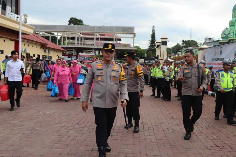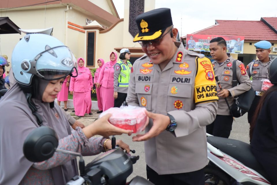 Kegiatan pembagiam Takjil menghadirkan Kapolres Kutai Barat AKBP Kade Budiyarta didampingi Wakapokres Kubar Kompol Ahmad Abdula, Pejabat Utama, Bayangkari Cabang, ASN beserta Staf dan perwira Polres Kutai Barat. (Daniel)