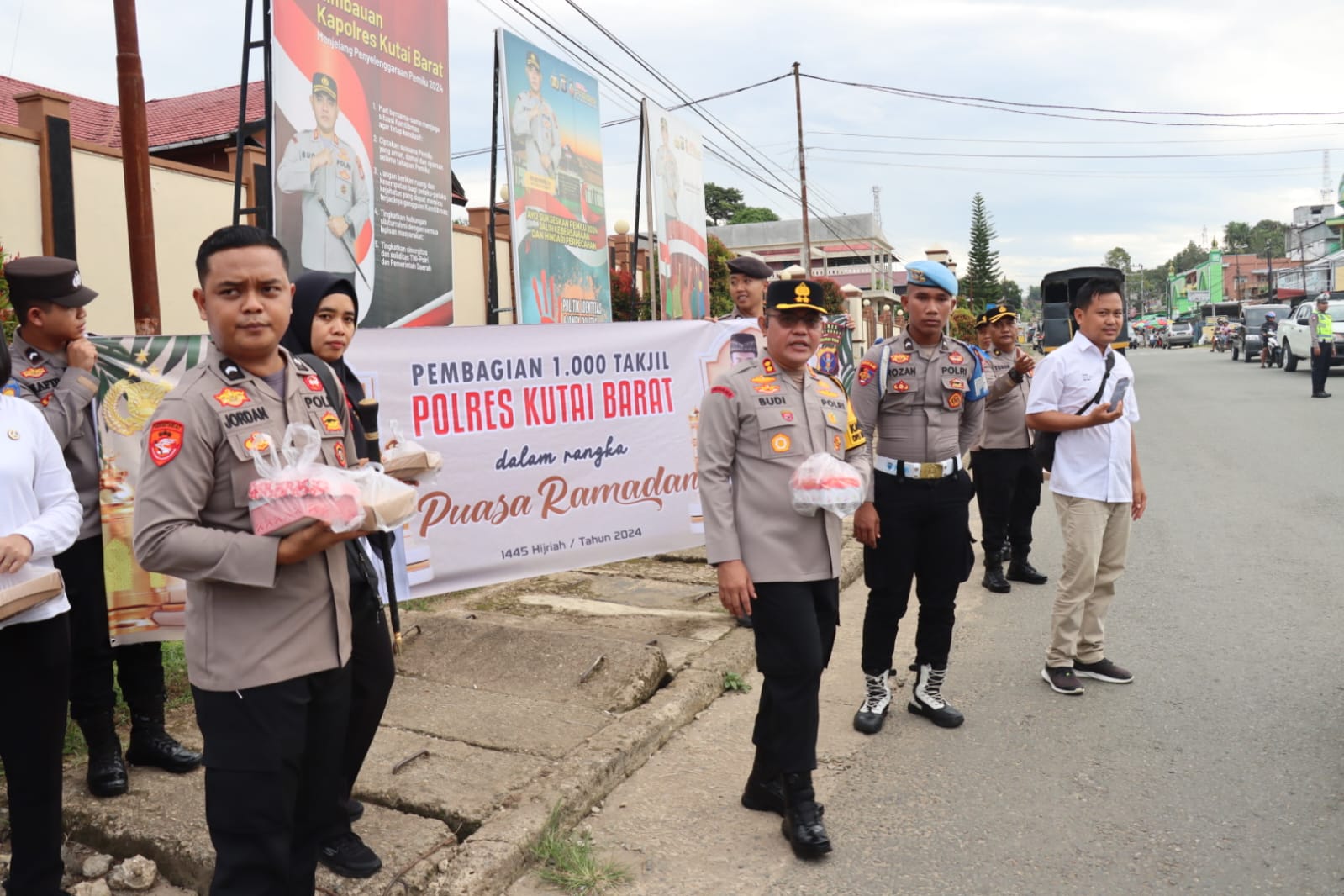 Kapolres Kutai Barat AKBP Kade Budiyarta menyatakan, pembagian takjil kepada pengendara kendaraan ini dalam rangka Bulan Suci Ramadhan 1445 H, dan sebagai rasa kepedulian kepada Masyarakat.
