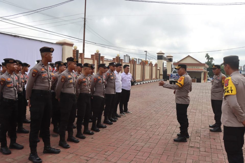 Kabag Ops Polres Kubar Kompol E. Teguh Budi S,Sth menggelar apel patroli antisipasi May Day bertempat di Halaman Mako Polres Kutai Barat,Rabu (1/5/2024)