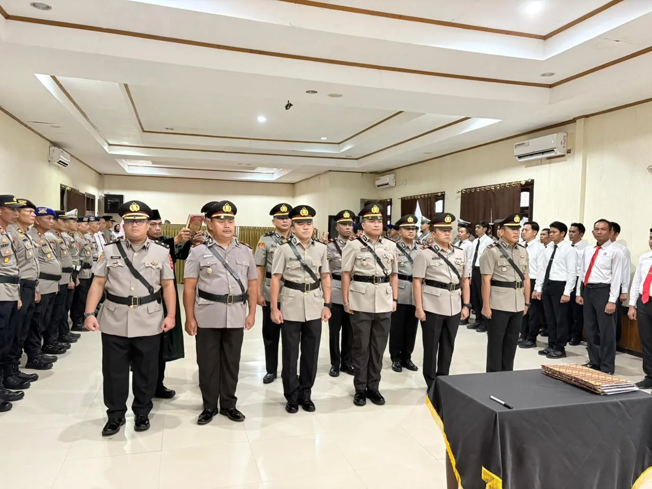 Polres Kutai Barat melaksanakan upacara serah terima jabatan (Sertijab) sejumlah pejabat utama di lingkungan Polres Kutai Barat pukul 08.00 Wita, di Aula Catur Prasetya Polres Kutai Barat.pada Rabu (8/4/2026)