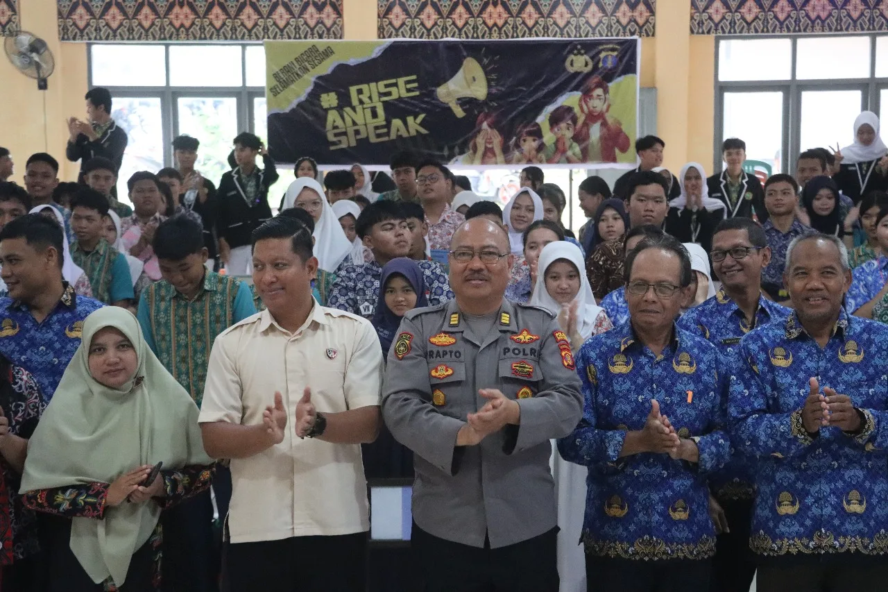 Polres Kutai Barat melalui bagian SDM bersama Unit PPA Satreskrim, Satlantas, Satresnarkoba, dan Polwan melaksanakan kegiatan sosialisasi bertajuk “Rise and Speak” di SMA Negeri 1 Kutai Barat.