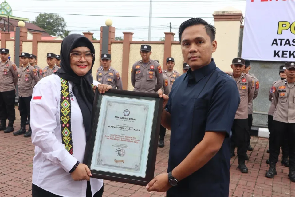 Polres Kutai Barat menerima penghargaan dari Tim Reaksi Cepat Perlindungan Perempuan dan Anak (TRC PPA) Indonesia atas capaian kinerja dan komitmen dalam penanganan kasus kekerasan terhadap perempuan dan anak. pada Selasa (20/1/2026) pukul 08.00 WITA di Lapangan Apel Mapolres Kutai Barat.