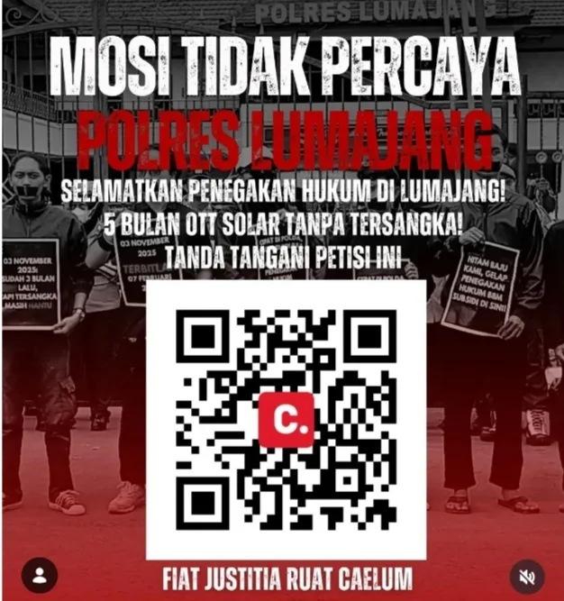 Muncul petisi online dengan tagline ‘Mosi Tidak Percaya Polres Lumajang’ diakun Instagram LSGA.Lumajang diterima media ini, Kamis pagi.