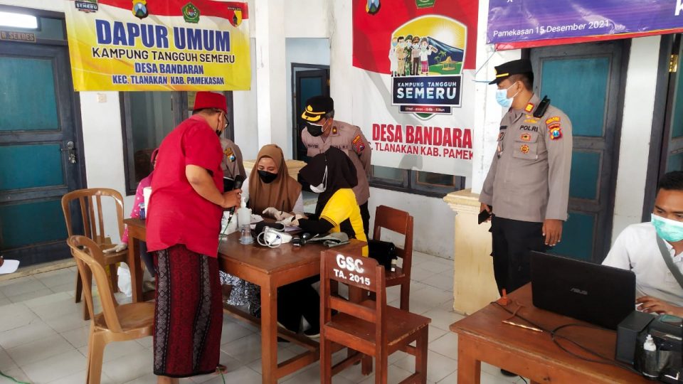 Polres Pamekasan gencar melaksanakan vaksinasi kepada warga masyarakat. Kali ini dilaksanakan di Balai Desa Bandaran, Kecamatan Tlanakan, Pamekasan. Kamis (14/1/2022).