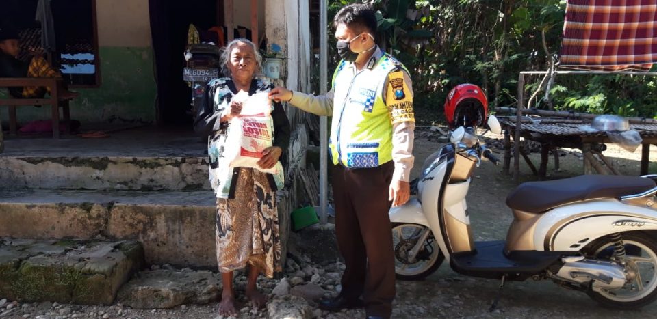 Bantuan sosial yang diberikan oleh Kapolres Pamekasan AKBP Djoko Lestari, berupa beras kepada warga masyarakat yang terdampak wabah virus Corona.