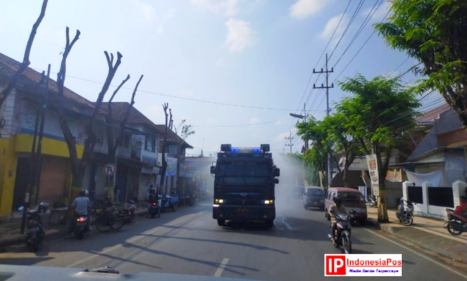 Polres Pamekasan kembali beraksi melakukan penyemprotan Disinfektan dengan menggunakan water canon di Jalan Jokotole, Trunojoyo, Seputaran Arek Lancor, Diponegoro, Kabupaten, Pintu Gerbang, Pasar 17 Agustus Kelurahan Bugih, Agus Salim dan Pasar Kolpajung Kelurahan Kowel, Selasa (08/06/2021)