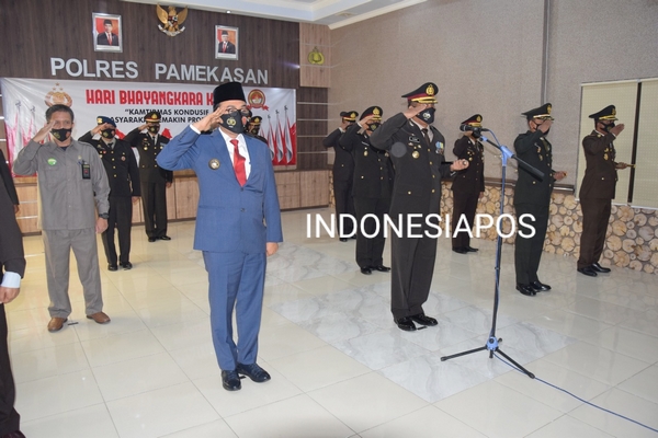 PAMEKASAN,IndonesiaPos – Peringatan Hari Bhayangkara yang ke-74 tahun ini diperingati dengan cara yang berbeda dari tahun yang sebelum nya, karena pandemi Covid-19. Yang dihadiri Kapolres Pamekasan AKBP Djoko Lestari, Forkopimda, PJU Polres, Perwakilan Kapolsek jajaran Polres Pamekasan.