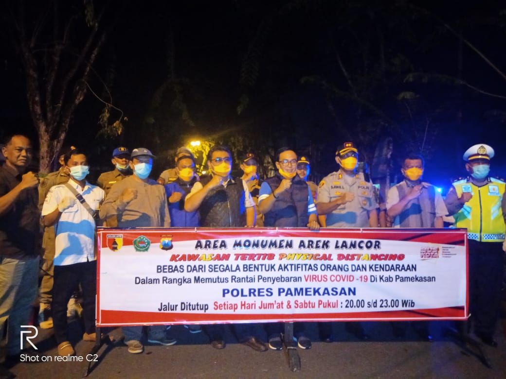Kepolisian Resort Pamekasan, sepakat untuk menetapkan kawasan area Monumen Arek Lancor sebagai kawasan tertib ” Physical Distancing (Jaga Jarak Fisik)”. Penetapan tersebut berdasarkan hasil keputusan rapat yang digelar bersama jajaran Forkopimda pada Sabtu (28/3/2020).