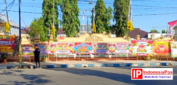 Tampak deretan karangan bunga berjejer dengan ucapan selamat hari Bhayangkara ke-75 yang di kirim dari berbagai kalangan baik instansi pemerintah, pengusaha BUMN, BUMD bahkan dari organisasi kemasyarakatan.