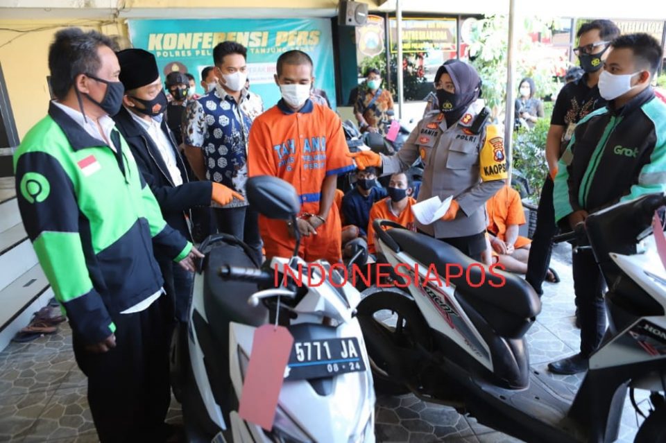Polres Pelabuhan Tanjung Perak mengembalikan sepeda motor kepada pemiliknya, setelah petugas berhasil mengamankan oleh pelaku dan BB Senin (19/10/20).