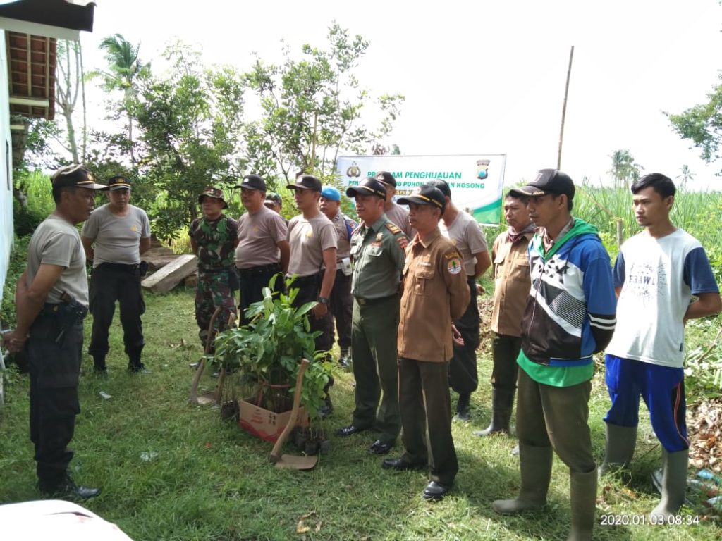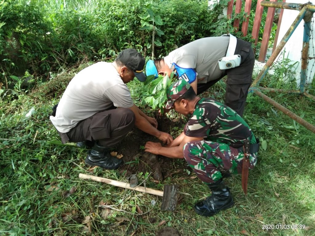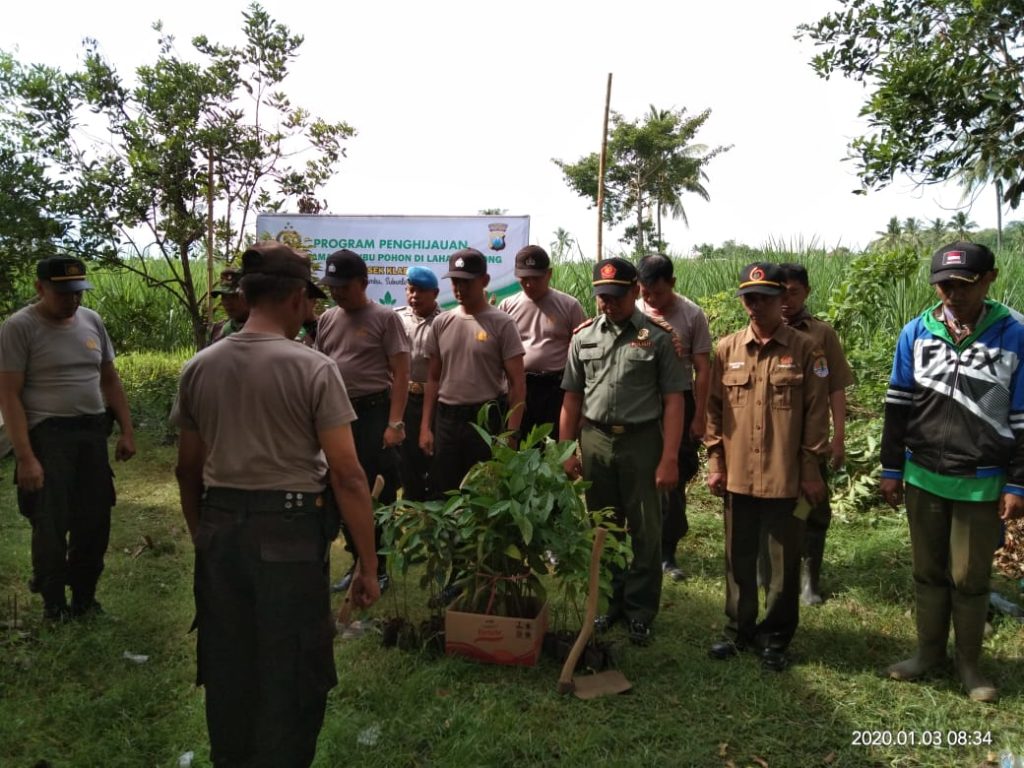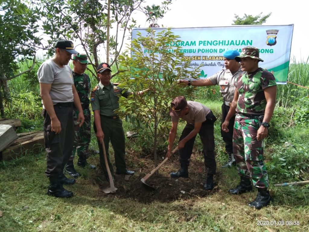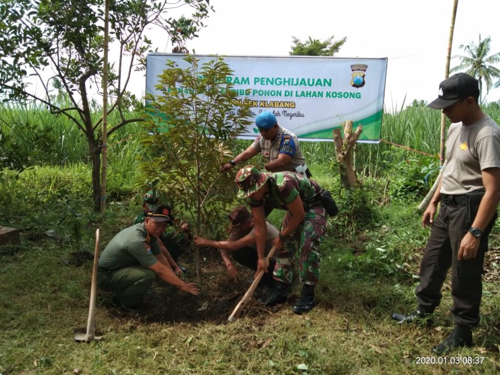 Polsek Klabang dengan Muspika, Perhutani dan Warga setempat melakukan penanaman 1000 pohon di area pekarangan Mapolsek. Jum’at (03-01-2020).