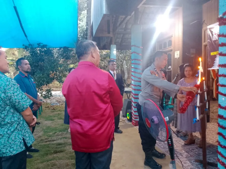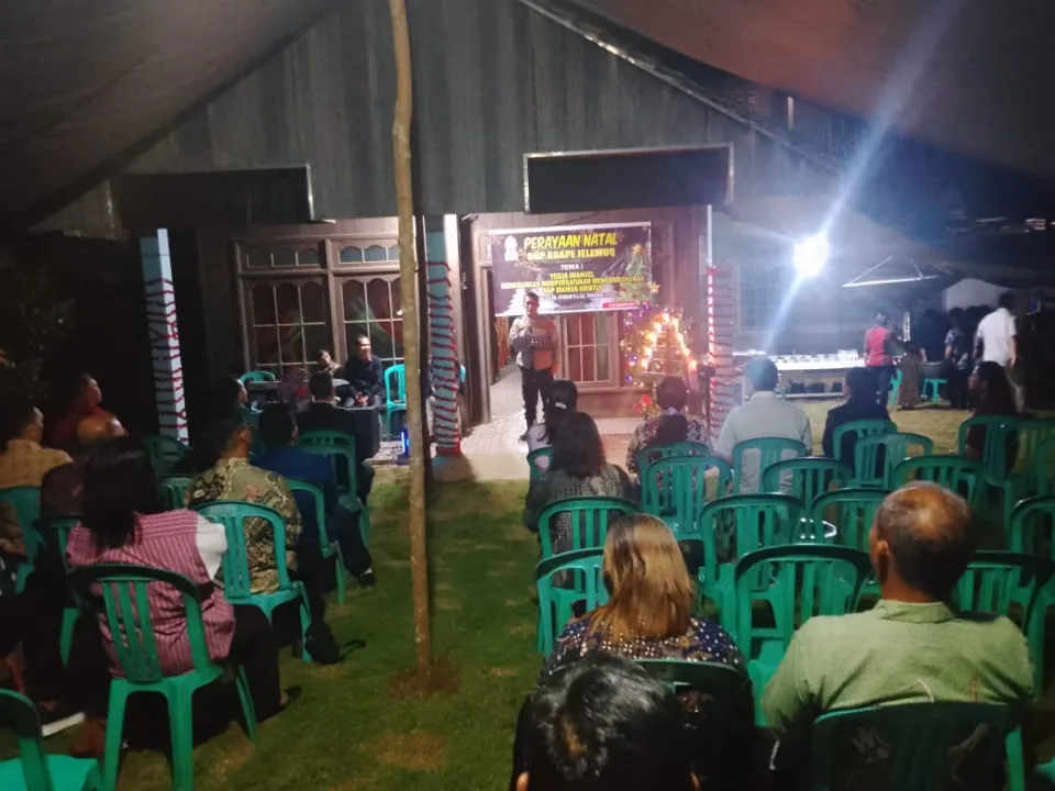 Anggota Polsek Long Iram melaksanakan kegiatan pengamanan Ibadah Natal di Gereja Gerakan Pantekosta (GGP) Agape, Kampung Linggang Jelemuq RT 03, Kecamatan Tering, Kabupaten Kutai Barat, pada Selasa, 02 Desember 2025 pukul 17.00 WITA.