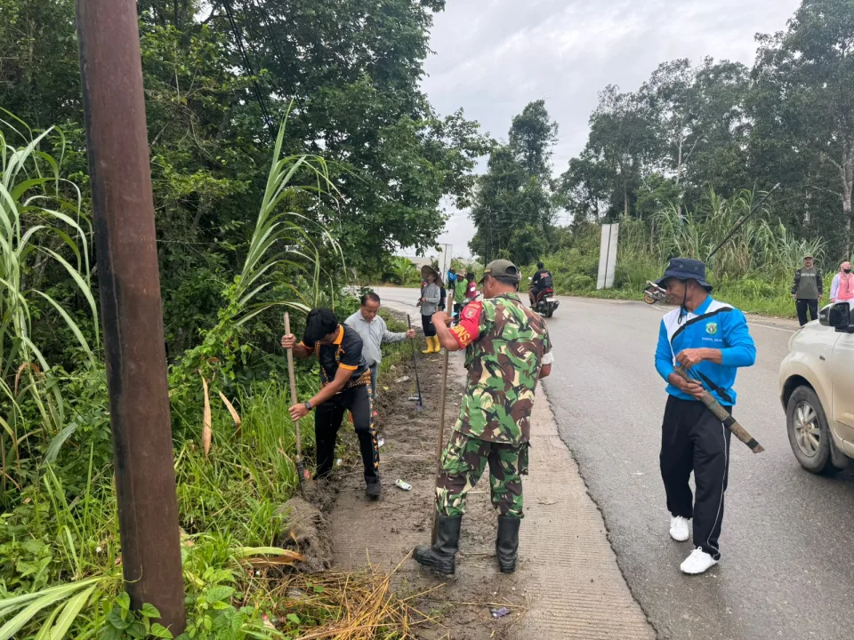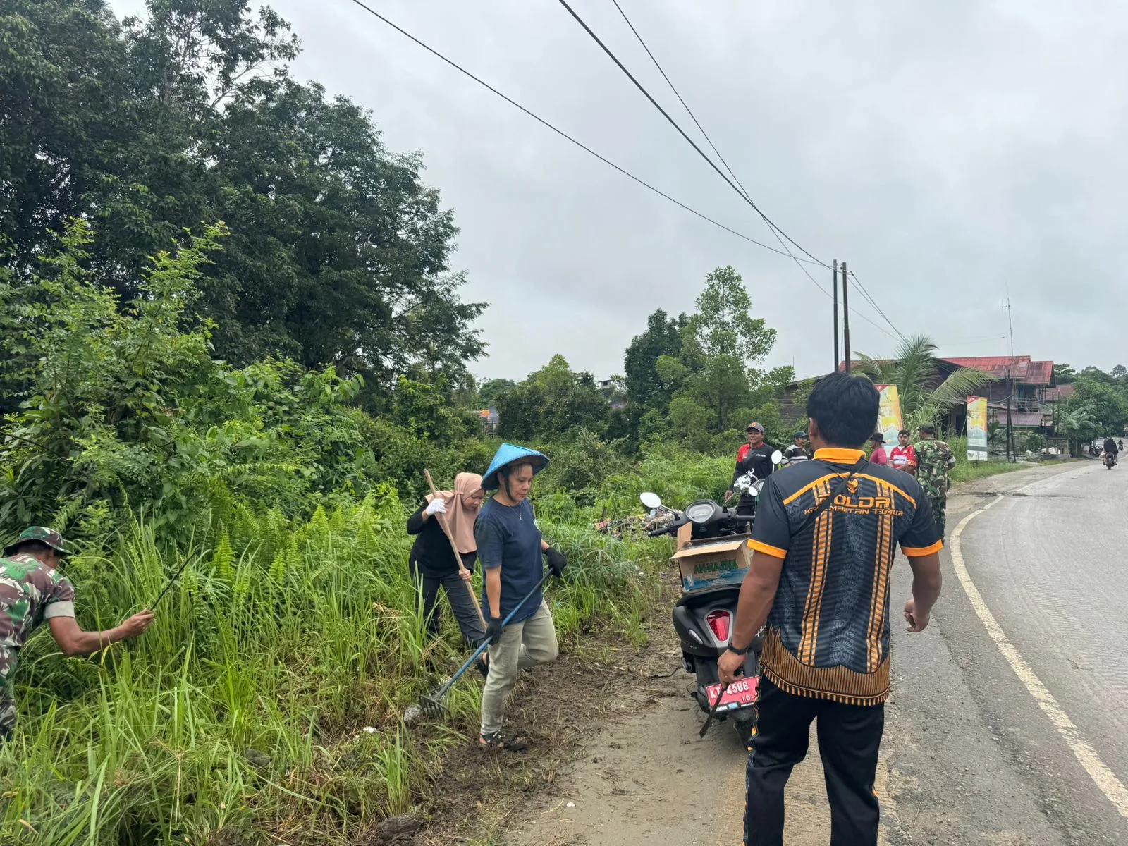 Polres Kutai Barat melalui Polsek Muara Lawa bersama Forkopimcam Kecamatan Muara Lawa dan masyarakat melaksanakan kegiatan gotong royong pembersihan di sepinggiran jalan Kampung Lambing, Kecamatan Muara Lawa, Kabupaten Kutai Barat.