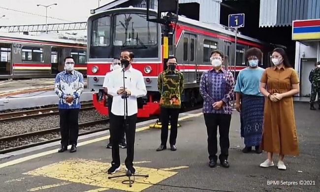 “Kita tahu Bogor adalah wilayah aglomerasi, penyangga dari Jakarta, sehingga interaksi, mobilitas, semuanya tinggi. Oleh sebab itu, kita ingin memberikan prioritas baik bagi penumpang KRL dan penumpang kereta api, juga pekerja di stasiun untuk melindungi mereka dari Covid-19,” ujar Jokowi.