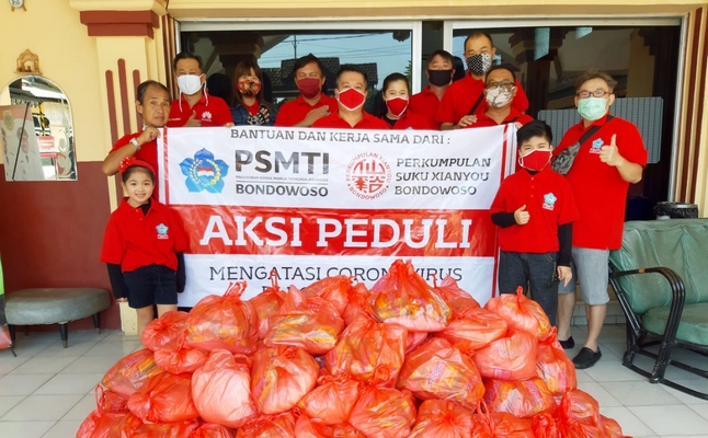 Puluhan warga Tionghoa yang tergabung dalam Paguyuban Sosial Marga Tionghua (PSMTI) Bondowoso kembali membagi-bagikan ratusan paket beras dan mie instan kepada para pengemudi becak dan sejumlah warga lainnya.