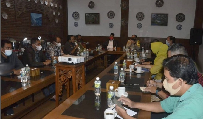 Rencana revisi Perbup Prokes sudah dibahas serius oleh Satgas Covid-19 Kabupaten Bondowoso. Pembahasan dipimpin Wabup Irwan melalui rapat koordinasi Satgas Covid-19 Bondowoso di Bharata Caffe pada Kamis malam 2 April 2021. Rakor dihadiri Kapolres Bondowoso AKBP Erick Frendriz, Dandim 0822 Letkol Kav. Widi Widayat, dan seluruh perwakilan Satgas Covid-19 Kota Tape –sebutan Bondowoso-. (ido)