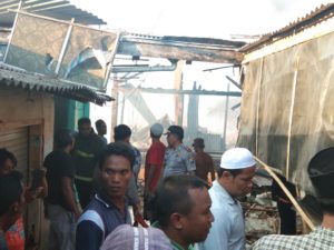 Melihat api yang membumbung ke atas yang berasal dari rumah kios Baju milik Moh Aliyanto asal Dusun Poja I, Desa Candi, Kecamatan Dungkek Sumenep.