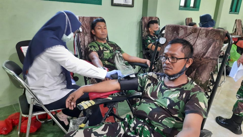 PAMEKASAN, IndonesiaPos – puluhan prajurit Kodim 0826 Pamekasan bekerjasama dengan PMI menggelar donor darah di Aula Makodim setempat, pada Senin (06/06/2022).