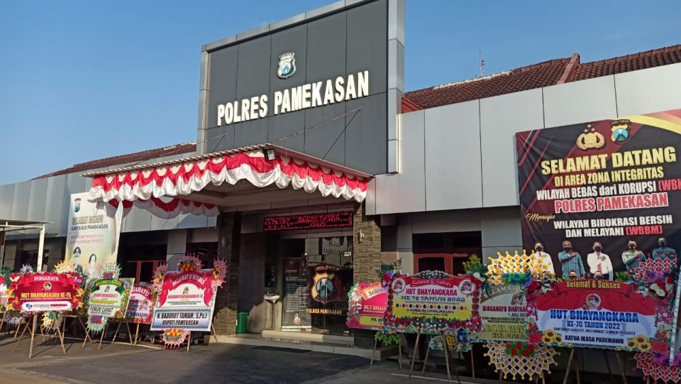PAMEKASAN, IndonesiaPosRatusan karangan bunga ucapan Hari Bhayangkara Ke-76 penuhi halaman Mapolres Pamekasan, di Jalan Stadion nomor  81 Kabupaten Pamekasan.