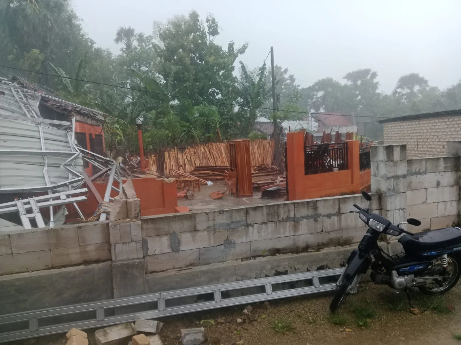 “Awalnya hujan deras disertai petir, seketika ada angin kencang yang kayak berpusar itu menyambar rumah warga termasuk rumah saya, jadi ga ada firasat akan seperti ini,”pungkasnya.