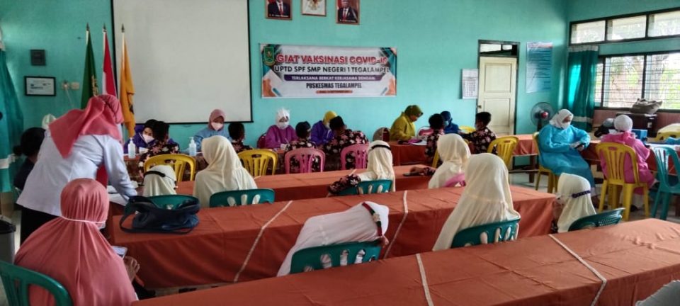 Sedikitnya 173 siswa-siswi SMP Tegalampel menjalani vaksinasi di sekolah Rabu ini (15/9/2021).
