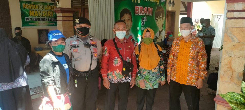 Pelaksanaan vaksinasi di Posyandu Mandiri RW 5 itu dihadiri oleh warga, lurah Badean Suarso juga petugas dari Polsek Kota AIPDA Lukman Beril Marila.