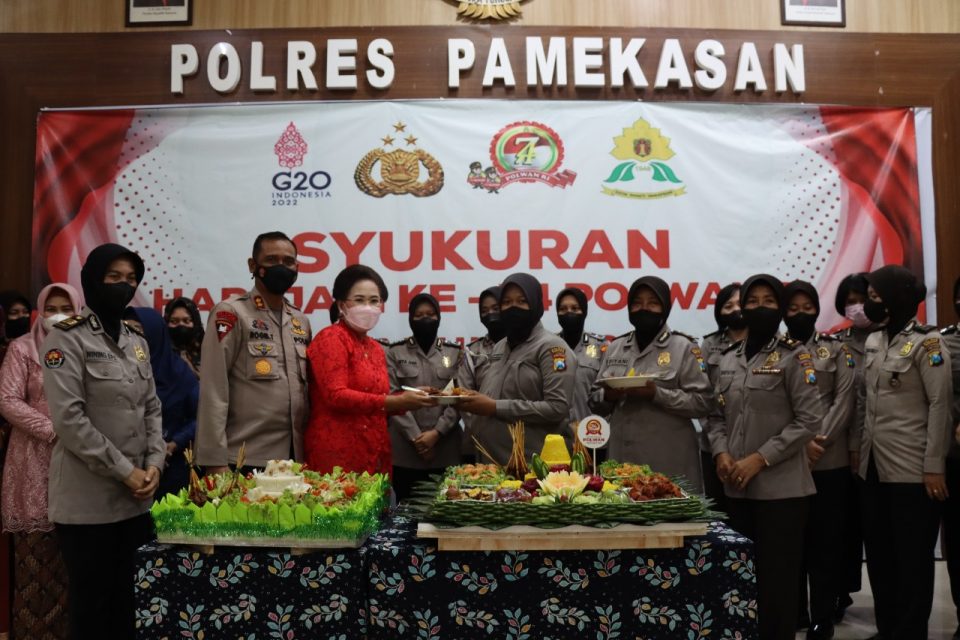 PAMEKASAN, IndonesiaPos – Polres Pamekasan menggelar tasyakuran, HUT ke-74 Polisi Wanita (Polwan) di Gedung Bhayangkara. Kamis (8/9/2022) siang.