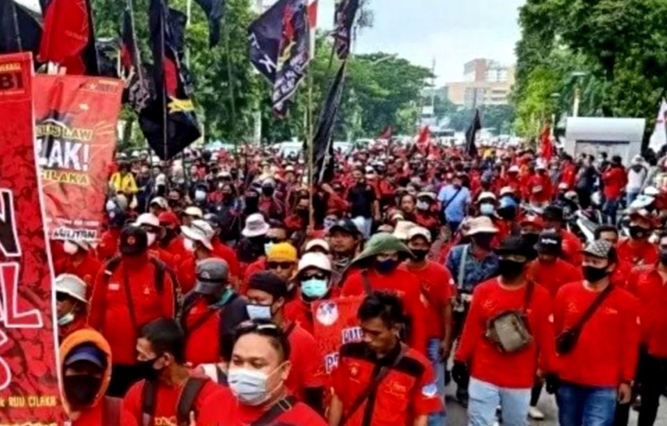 Diperkirakan jumlah massa yang masih bertahan hingga 21.30 WIB sekitar 2.000-3.000. Mereka sebagian besar datang dari luar Jakarta yang tergabung dalam beberapa organisasi buruh.