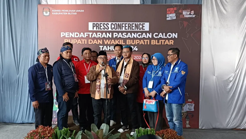 Pasangan bakal calon Bupati (Cabup) dan Wakil Bupati (Cawabup) Blitar, Rijanto-Beky Herdihansah resmi mendaftar ke KPU Kabupaten Blitar pada Pilkada 2024.