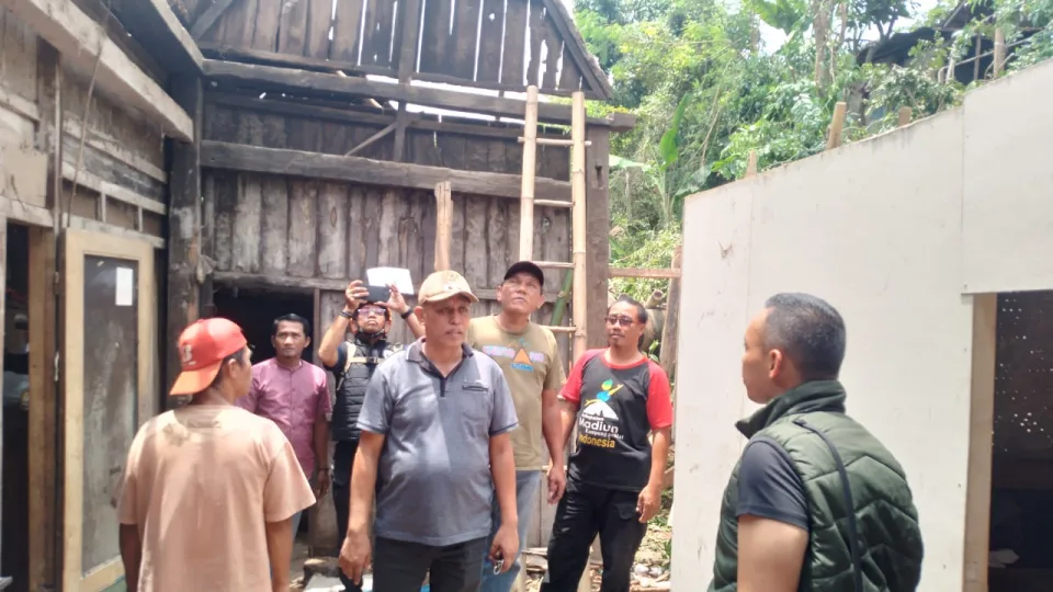 Pantauan IndonesiaPos dilokasi kejadian, banyak warga bergotong royong memperbaiki kembali rumah Buk Sahud yang prak poranda. (tikno)