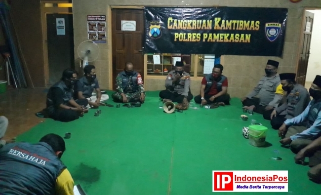 Kasat Binmas Polres Pamekasan IPTU Bambang Irawan bersama anggotanya menggelar Cangkru’an Kamtibmas di Kantor Desa Branta Pesisir Kecamatan Talanakan, Kabupaten Pamekasan.