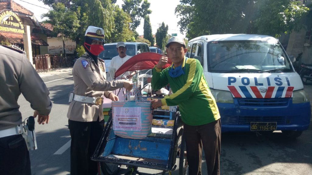 Bhakti sosial ini dipimpin langsung oleh Kasat Lantas Polres Pamekasan AKP Didik Sugiarto, bersama sejumlah anggotanya, membagikan sembako kepada tukang becak, sopir taksi, tukang ojek yang melintas di depan Mapolres Pamekasan, kemudian di terminal lama Jalan Stadion dan di Jalan Niaga Pamekasan.