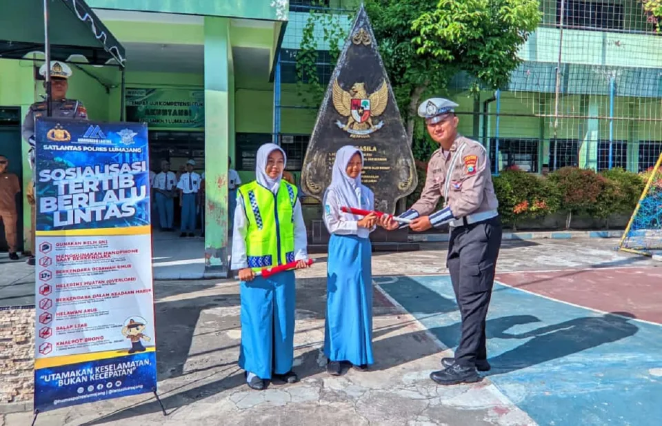 Satlantas Polres Lumajang terus gencar melakukan langkah preventif untuk menekan angka pelanggaran lalu lintas sekaligus meminimalisir risiko kecelakaan di kalangan pelajar. Salah satunya melalui program Police Goes to School yang kali ini digelar di SMK Negeri 1 Lumajang pada Senin (24/9/2025).