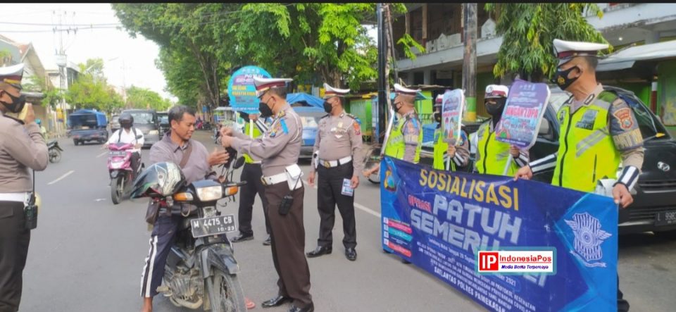 Selain membagikan masker dan brosur Operasi Patuh Semeru 2021 juga memberikan imbuan Keamanan, Keselamatan, Ketertiban dan Kelancaran arus Lalu Lintas kepada pengguna jalan.