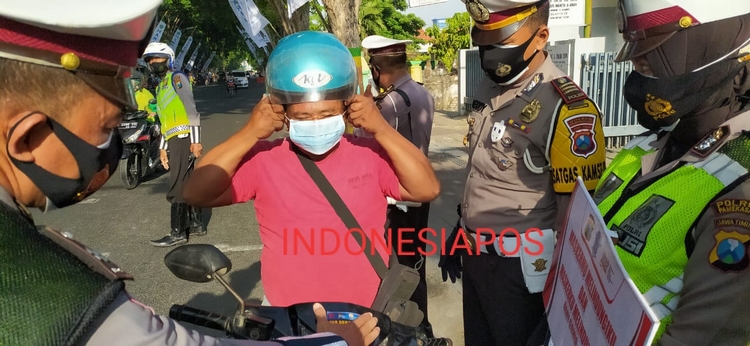 “Bagi masyarakat yang tidak menggunakan masker kita beri teguran dan kita beri masker, sementara yang melanggar aturan lalu lintas dikenakan sanksi berupa tilang,”katanya.