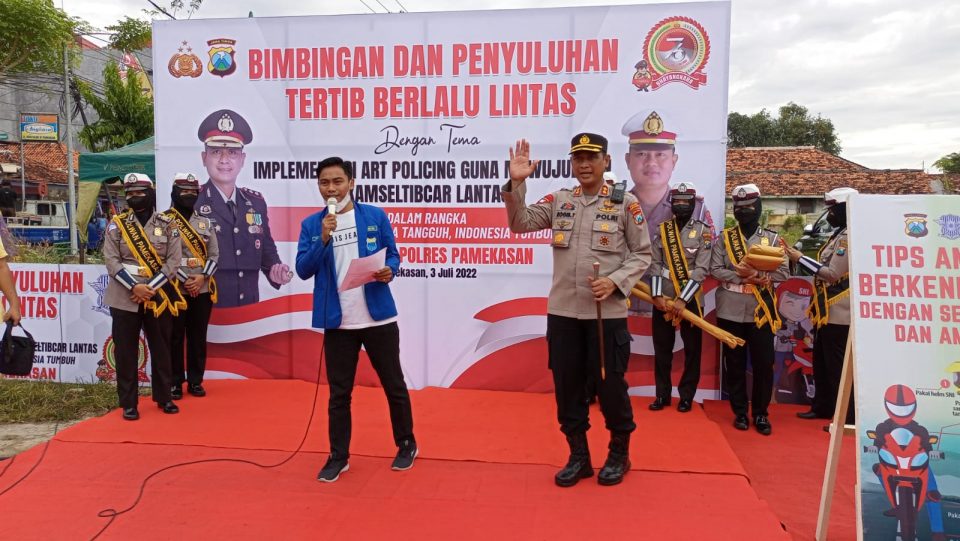 PAMEKASAN, IndonesiaPos – Mengusung tema Implementasi Art Policing Guna Mewujudkan Kamseltibcar Lantas dalam rangka Menuju Indonesia Tangguh, Indonesia Tumbuh, Satlantas Polres Pamekasan menyelenggarakan bimbingan dan penyuluhan tertib berlalu lintas. Senin (4/07/2022).