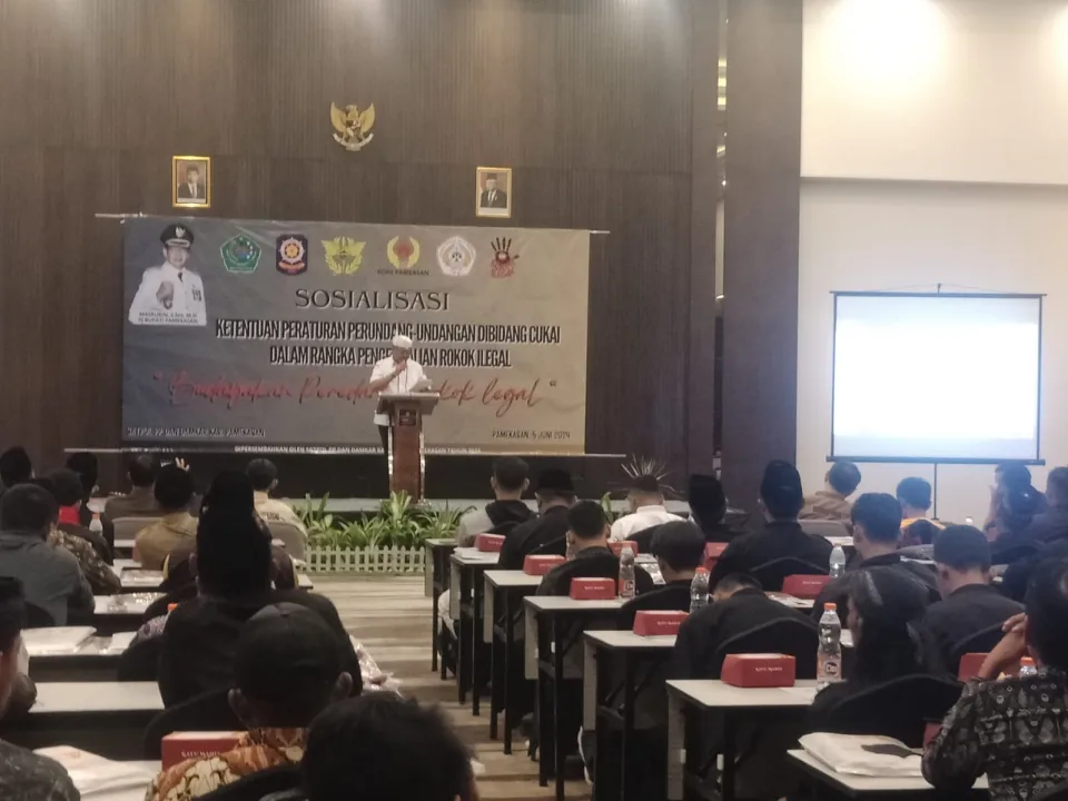 Satuan Polisi Pamong Praja (Satpol PP) dan pemadam kebakaran (Damkar) Kabupaten Pamekasan menggelar kegiatan, Sosialisasi ketentuan peraturan perundang undangan di bidang cukai dalam rangka pengendalian rokok ilegal’ bertempat di aula gedung Azzana Style Hotel pada Rabu 5 Juni 2024 pagi.