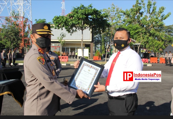 Sebanyak 41 orang anggota Polres Sampang yang berprestasi dalam kerja pengungkapan kasus pidana dan mensukseskan kegiatan program pemerintah dalam pandemi Covid-19, mendapat piagam penghargaan yang dilaksanakan pada apel di lapangan Wira Manunggal Wicaksana pada Selasa (27/07/2021) kemarin