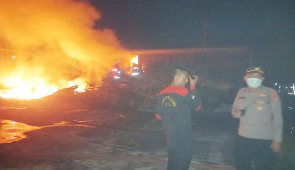 Gudang tempat penyimpanan barang milik Toko Vegas di Kecamatan Balung Kabupaten Jember Jawa Timur terbakar, Jum’at (15/8/2025)