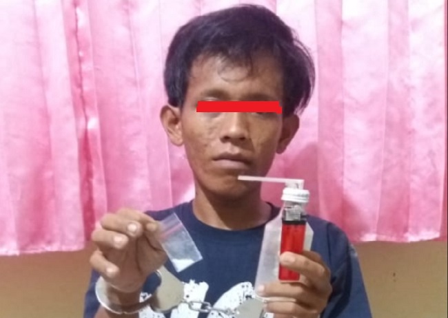 Tersangka Jamaluddin (25), pengguna narkoba jenis sabu warga Dusun Kolor, Desa Ketawang Larangan, Kecamatan Ganding, berhasil diringkus Kepolisian Sektor Ganding Sumenep.