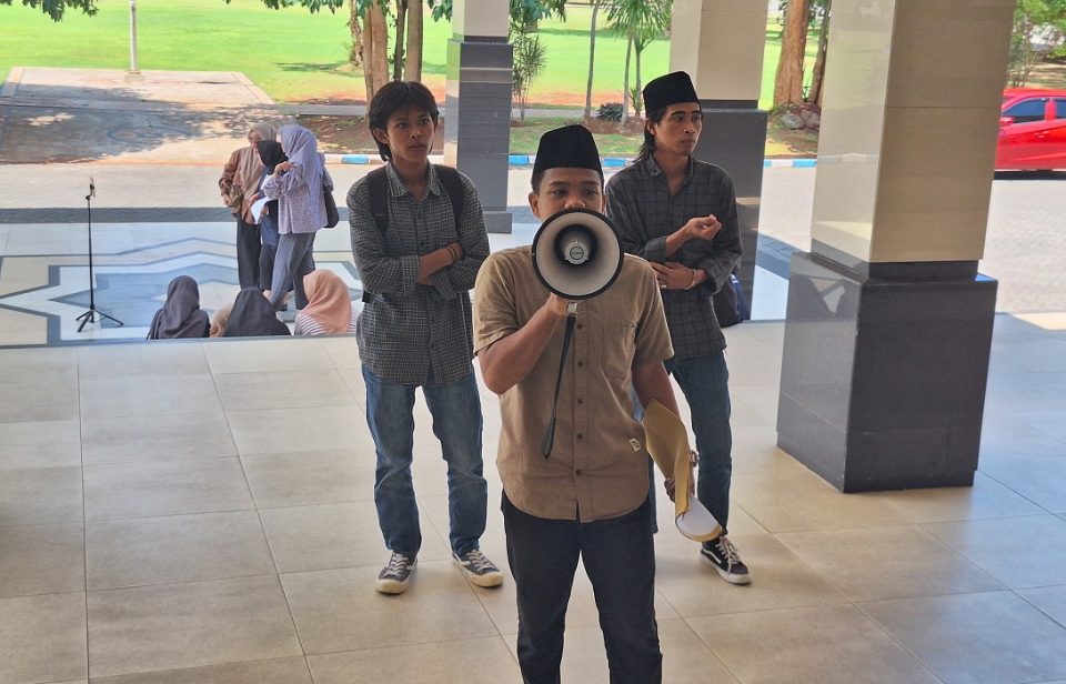 “Kampus UTM ini sudah tidak beres, fasilitas masih berantakan uktnya malah gak karuan, jangan ada dusta diantara kita,”ujar orator aksi bernama Ropik.