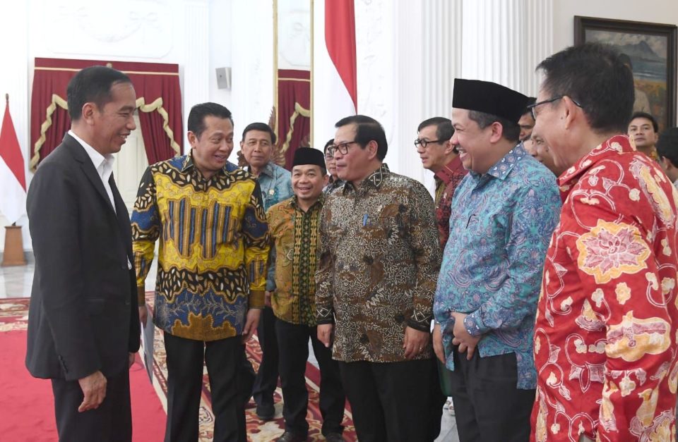 Ketua Dewan Perwakilan Rakyat (DPR), dengan sejumlah pimpinan DPR, ketua fraksi DPR, dan ketua komisi DPR mendatangai yang diterima oleh Presiden Joko Widodo di Istana Merdeka, Jakarta, Senin,(23/9 2019).