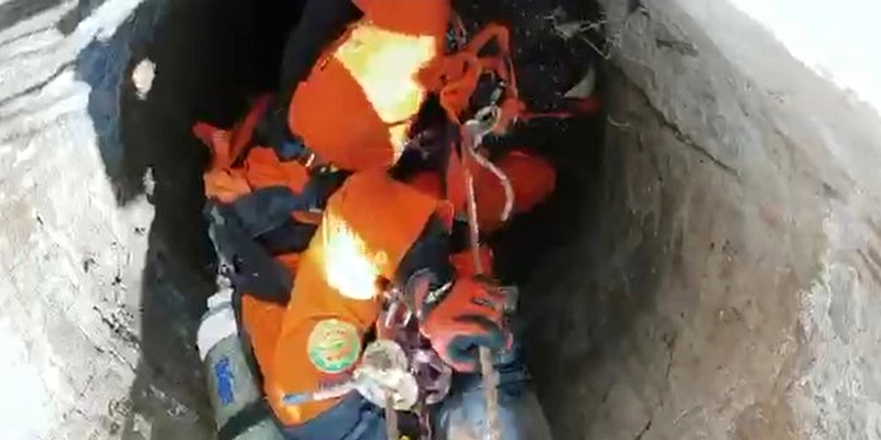 Dengan peralatan menyelam yang dimiliki tim Brimob dan perlengkapan vertical rescue yang ada, tim dibawah Komando BPBD tersebut berhasil mengangkat korban ke atas dari dasar sumur sempit.