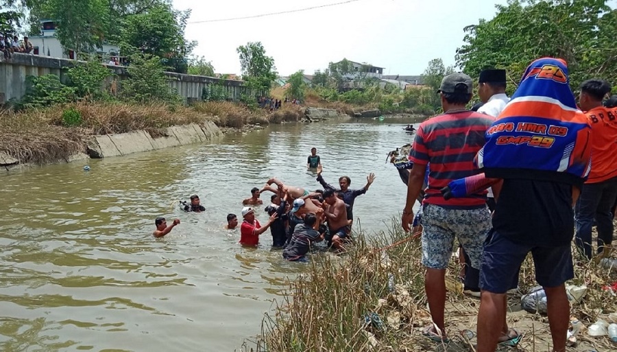 “Tak lama kemudian, Tim BPBD akhirnya menurunkan tim penyelam mencari korban yang dibantu oleh warga sekitar,”ucapnya.