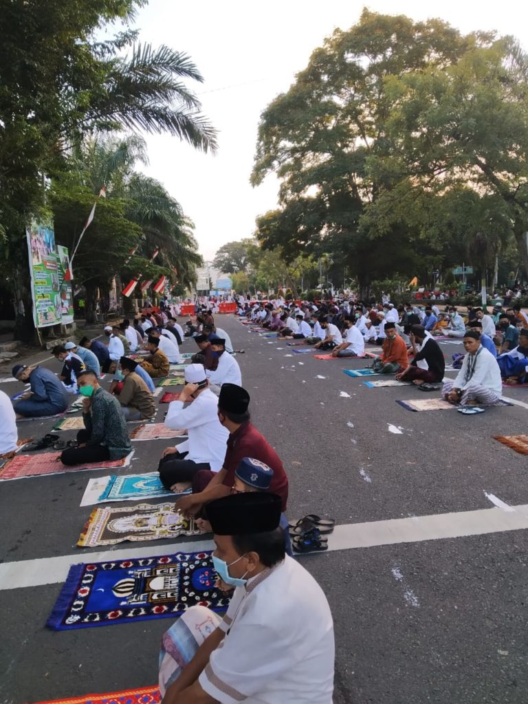 Perbedaan itu terlihat, ketika pelaksanaan sholat idul fitri di masjid dan musholla tetap membludak. Namun, tetap menjaga jaga sesuai aturan protokol kesehatan.