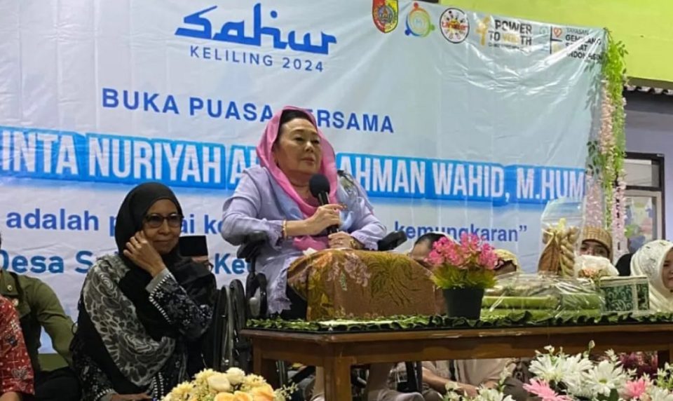 Sinta Nuriyah Abdurrahman Wahid bersama rombongan melakukan kegiatan buka puasa bersama komunitas Tanoker dan warga di Desa Sukogidri, Kabupaten Jember, Jawa Timur, Senin kemarin. (25/03/2024)