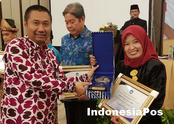Anik Sudiartini, SPd, MPd menerima penghargaan SMK Revitalisasi Terbaik Nasional 2019 dari Kemendikbud RI di Jakarta, Senin malam (16/12/2019). (foto: istimewa).